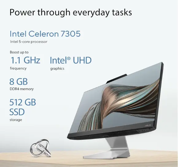 - Processor : Intel Celeron 7305 Processor 1.1 GHz (8M Cache, up to 1.1 GHz, 5 cores)